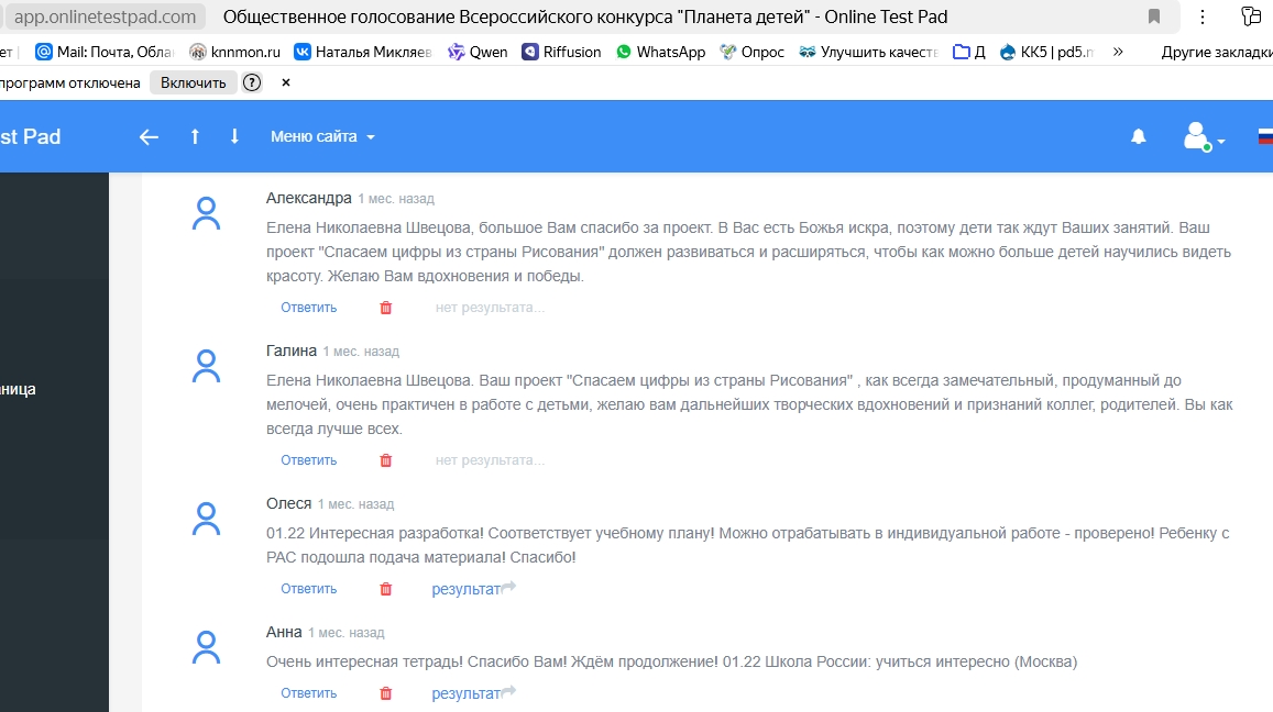 Всероссийский смотр-конкурс рабочих тетрадей для детей с ОВЗ «Планета детей» организован Институтом детства ФГБОУ ВО МПГУ. С 1 февраля по 1 апреля в его рамках проходил этап общественного голосования. В нем приняло участие 57.962 человек – участников конкурса рабочих тетрадей по организации самостоятельной работы детей дошкольного и младшего школьного возраста, их коллег и родителей обучающихся.